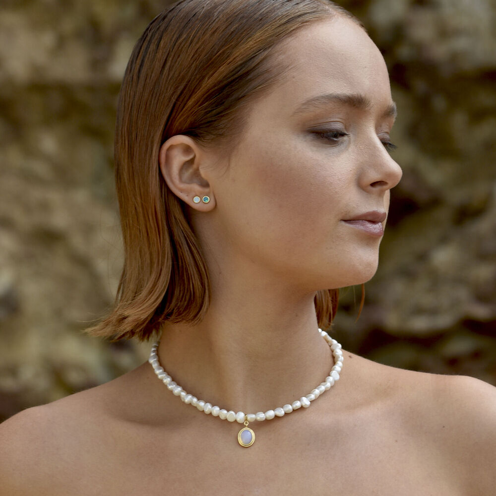 There are worlds in an opal. Introducing Miray Dainty Opal Stud Earrings (Gold Light Blue) - a delicate and timeless opal love for opal lovers of all ages and genders. This design features smoothly polished round flat opals with distinctive colour flares - in darker and lighter blue hues. The earrings are made in sterling silver for enduring and hypoallergenic wear. Suitable for everyday wear. Available in 18ct gold dark blue opal, 18ct gold light blue opal, or silver.
