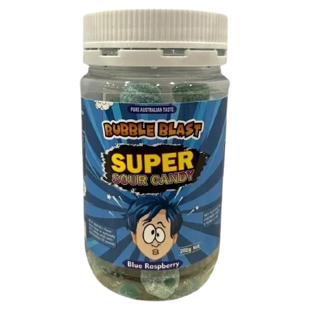 Bubble Blast Super Sour Blue Raspberry Candy 200g Australian Made Tangy Sweets