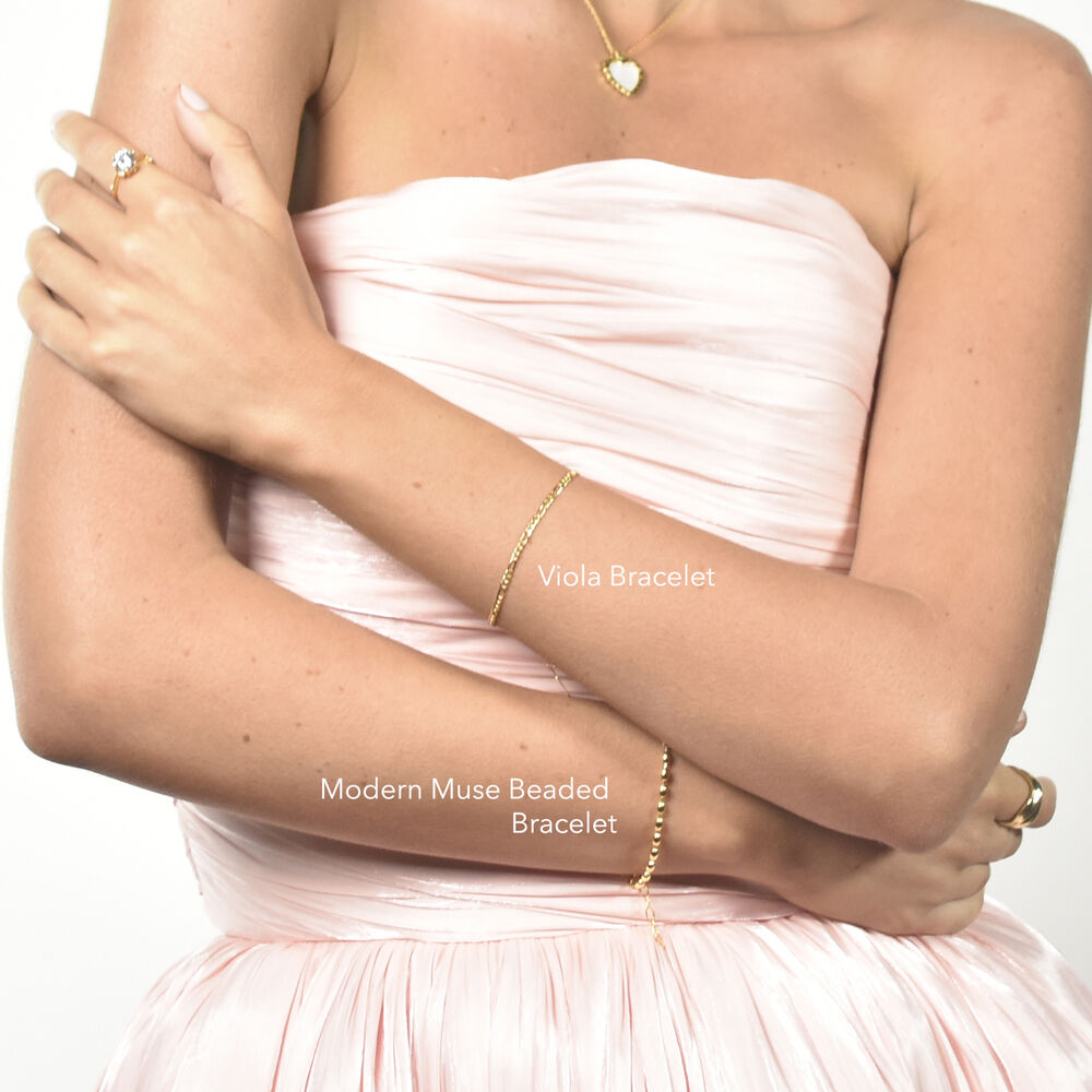 Delicate, chic and versatile for styling. Introducing Viola Fine Gold Link Chain Bracelet - a modern fine wrist love adding a subtle strength to your femininity. This design features a delicate fine link chain bracelet with smooth polish and a noble gold shine. This bracelet is made of solid sterling silver with 2.5 microns of high quality 18K gold plating (Gold Vermeil to Premium Jewellery Standard). It is 19.5cm long including a 4.5cm adjustable link for a more flexible fitting. Perfect for wearing on its own or layering with other bracelets. Suitable for all personal styles. Hypoallergenic, nickel, cadmium and lead free.