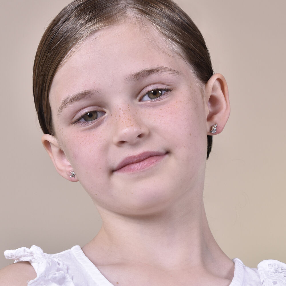 Culturesse dainty silver shell and starfish mismatched earrings made of solid sterling silver and Austrian zirconias. Free from nickel, cadmium and lead, 100% safe for little ears. Suitable for babies, children, newly pierced ears, and for adult dainty earring lovers.