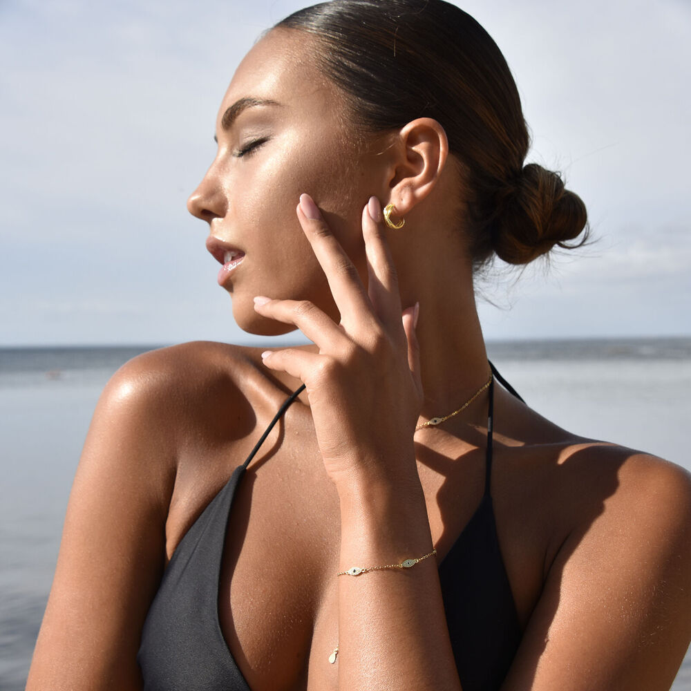 This Gift Set includes: Birdie Evil Eye Necklace (Gold) + Birdie Evil Eye Bracelet (Gold)