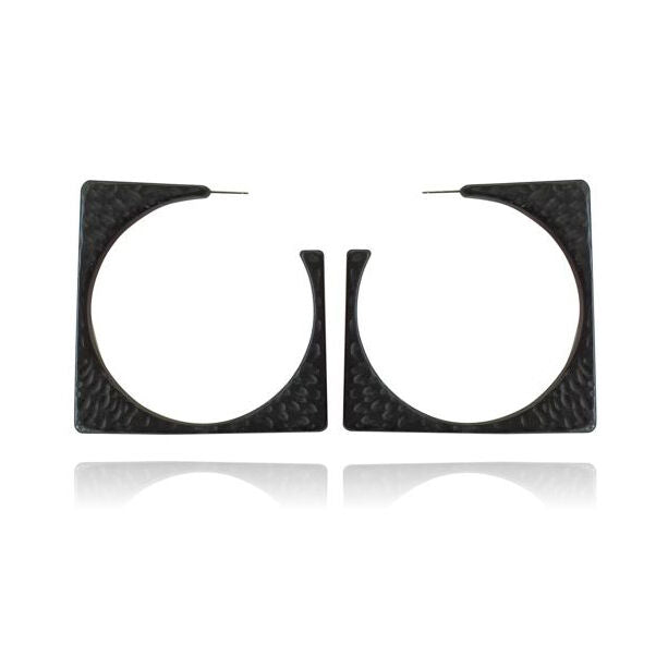 Punk, bold and eye-catching, Alia Geo Shape Statement Earrings are such a simple yet expressive design that draws attention in no time. The simple geo shape and textured black colour make this design a unique statement piece. Perfect for punk, street, fashion events, runway and minimalist styles.
