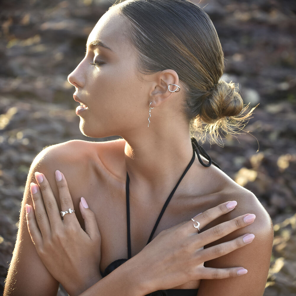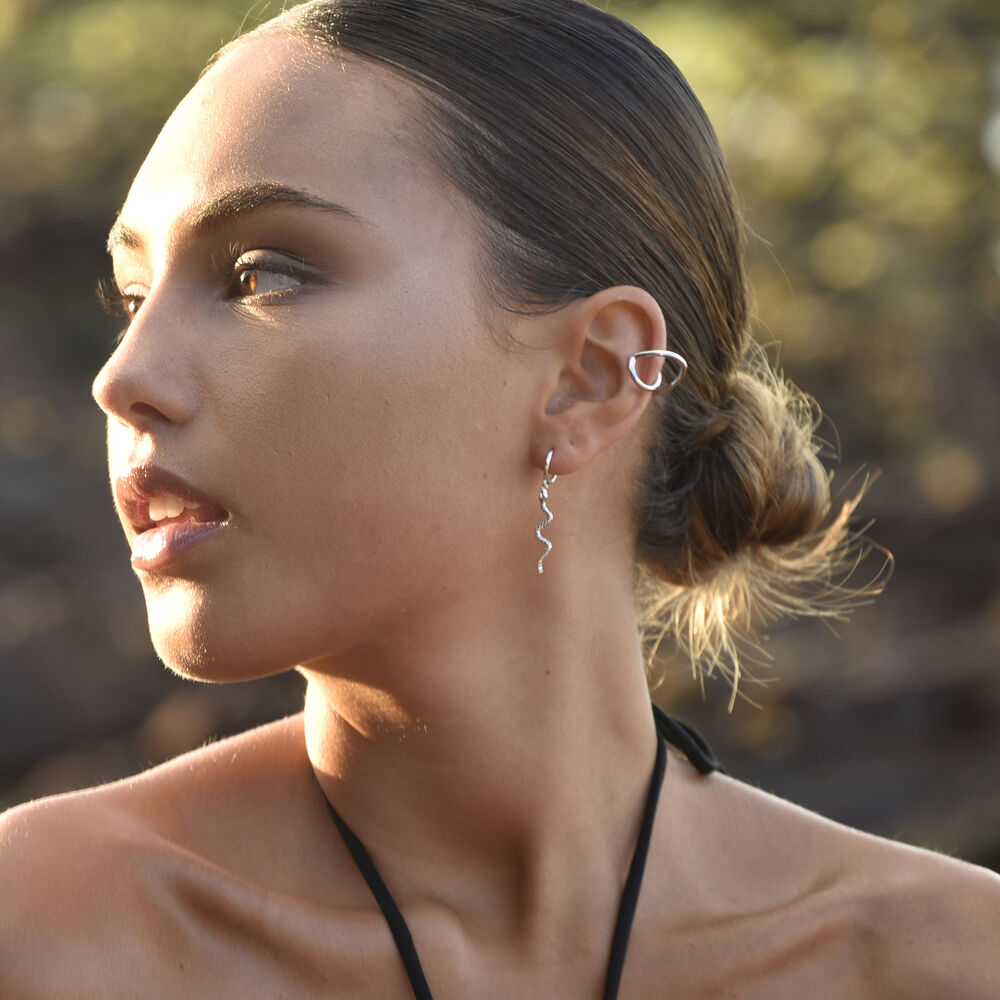 Artsy vibe with a modern edge. Introducing Harlow Sculptural Intertwined Cuff Earring (Single Piece Silver) - an art deco style cuff ear love inspired by contemporary sculpture. This design features a unique intertwined design that joins at both ends - ready to be clipped along your helix area. This cuff earring is made in solid sterling silver for enduring and hypoallergenic wear. The opening of the ear cuff can be easily adjusted manually for your ideal fit. Perfect for modern, artsy, creative, chic, punk, smart casual, casual and for non-pierced ears. Available in gold or silver. Hypoallergenic, nickel, lead, and cadmium free. Suitable for unisex wear.
