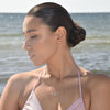 This necklace is 45cm long. Please kindly note that the position of the necklace sitting on your neck can vary from individual to individual depending on your top size. Model is a size 8.