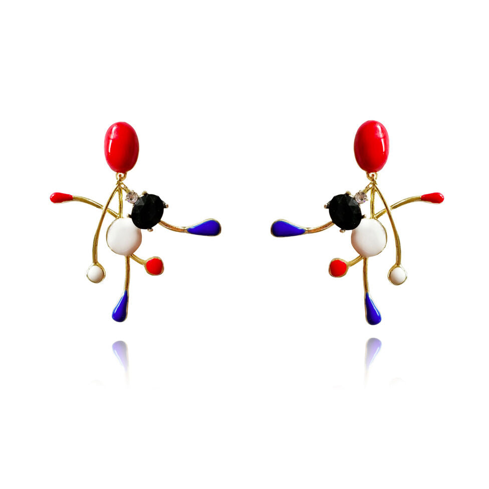 You are born unique. introducing Margot Born Unique Artsy Statement Earrings - an artsy statement that is not compromising for the routine styling. Contemporary, 'free-flow' and rebellious, this creative design is inspired by the concept of 'connected', illustrating independence and quirky fashion attitude. Crafted in stainless steel with 14K gold plating along with a splash of solid colours, this design makes a perfect statement for those who fancy something outside the norm.