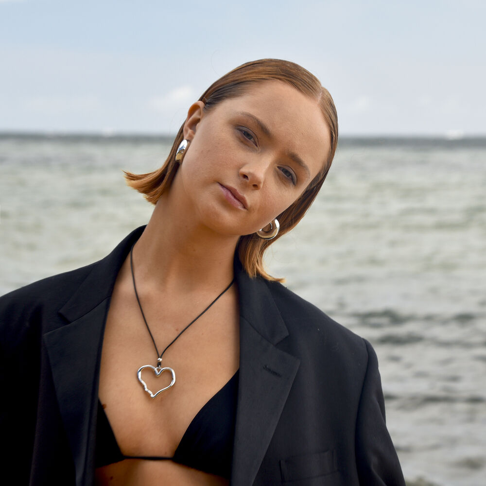 A statement that doesnt compete. It just is. Introducing Mason Sculptured Heart Pendant Necklace (Silver) - a contemporary art inspired pendant piece for the modernists. This design features a sculptured outline big heart pendant attached to black tieback strings. Tie the strings at the length you desire. The heart pendant is made in environmental friendly stainless steel. Wearing on its own or layering, it just cant be missed. Available in gold or silver.