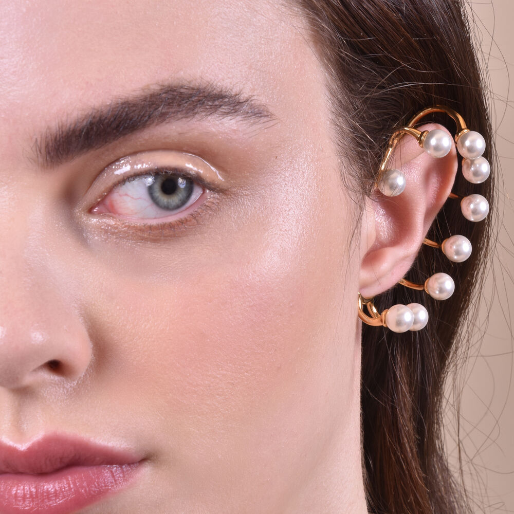 What high fashion statement earrings are really about. Introducing Unforgettable Runway Cuff Earrings - another exquisite top-trend ear love that will make the crowd go 'OMG'. Expressive, bold and simply unforgettable, this design is ethically crafted using environmentally friendly brass with premium 18K gold plating and marjorie pearls. Fashion guru style done in seconds. Perfect for runway, fashion events, dressy occasions and many more.