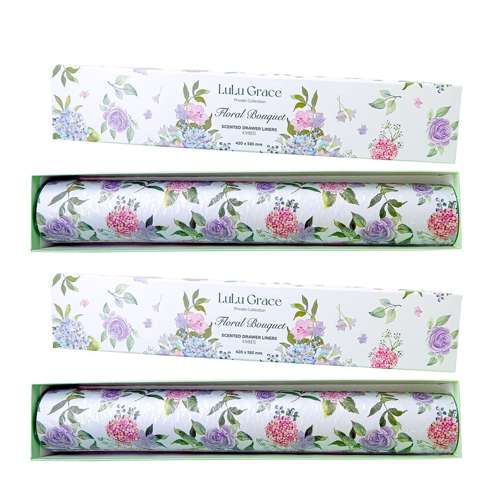 Infuse your drawers with long lasting floral fragrance using the Lulu Grace Floral Bouquet Scented Drawer Liners. This value set of 12 liners fits standard drawer sizes and keeps clothes linens smelling fresh.