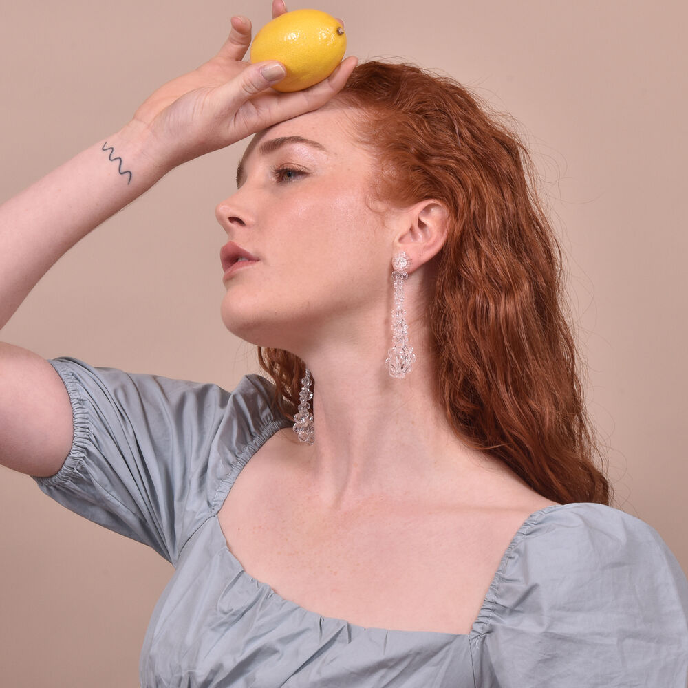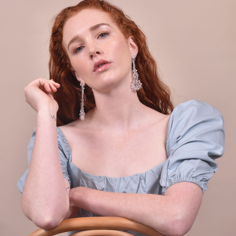 Romance with a clearer vision, introducing Isadora Beaded Floral Drop Earrings - a vintage-inspired feminine design accentuating feminine beauty with a soft statement. Refined and rich in details, this design features different sized beaded 'flowers' forming a flowing movement and sterling silver earring posts. Perfect for feminine, creative, chic, casual, girly, vintage, dressy, wedding, bridal, formal and semi-formal occasions.