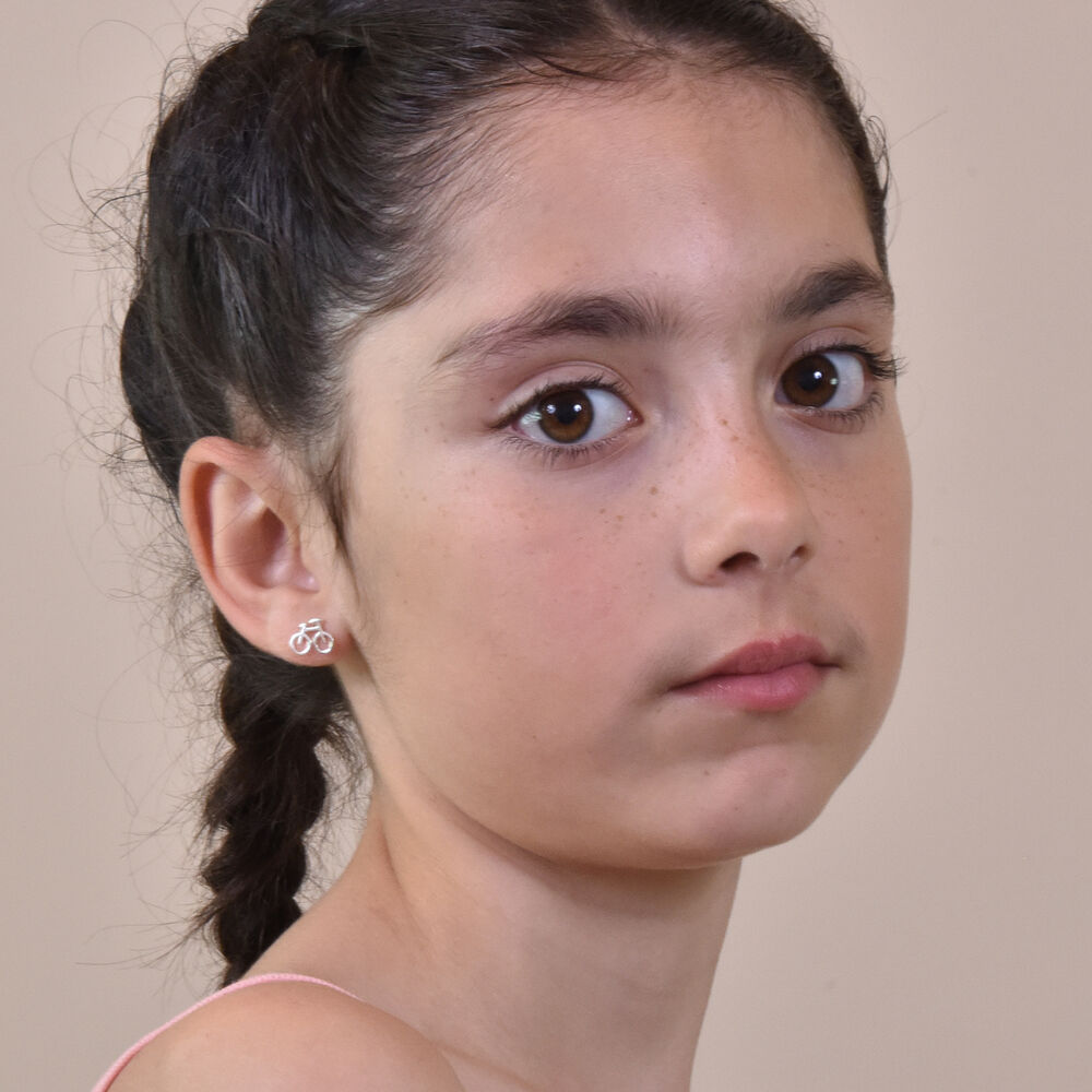 Culturesse dainty silver bicycle earrings made of solid sterling sliver. Free from nickel, cadmium and lead, 100% safe for little ears. Perfect for babies, children, newly pierced ears, and for adult dainty earring lovers.