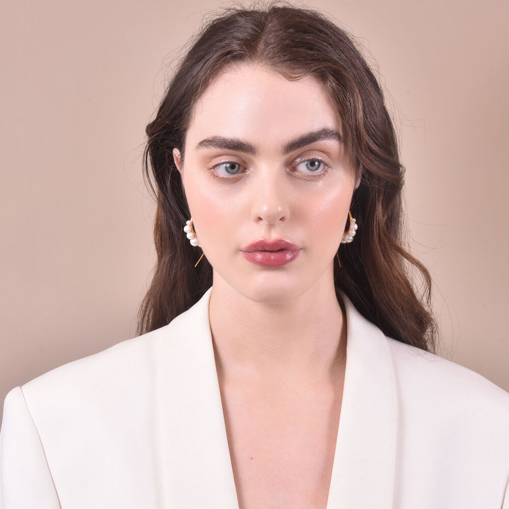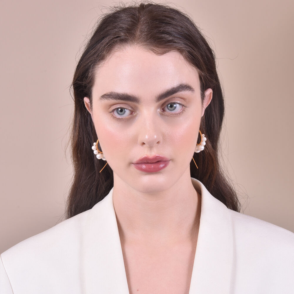 Art makes everything flow. Introducing Romane 24K Artisan Pearl Flow Earrings - an artisan design handcrafted with love. This unique and creative design incorporates an elegant arched flow with various sized cultured Akoya pearls placed on the turning edge, carving a gorgeous pearl flow around your ears. Our artisan earring range uses environmentally friendly brass (nickel free) with high quality 24K gold plating, making each piece an artsy and luxurious delight for lifelong wear.