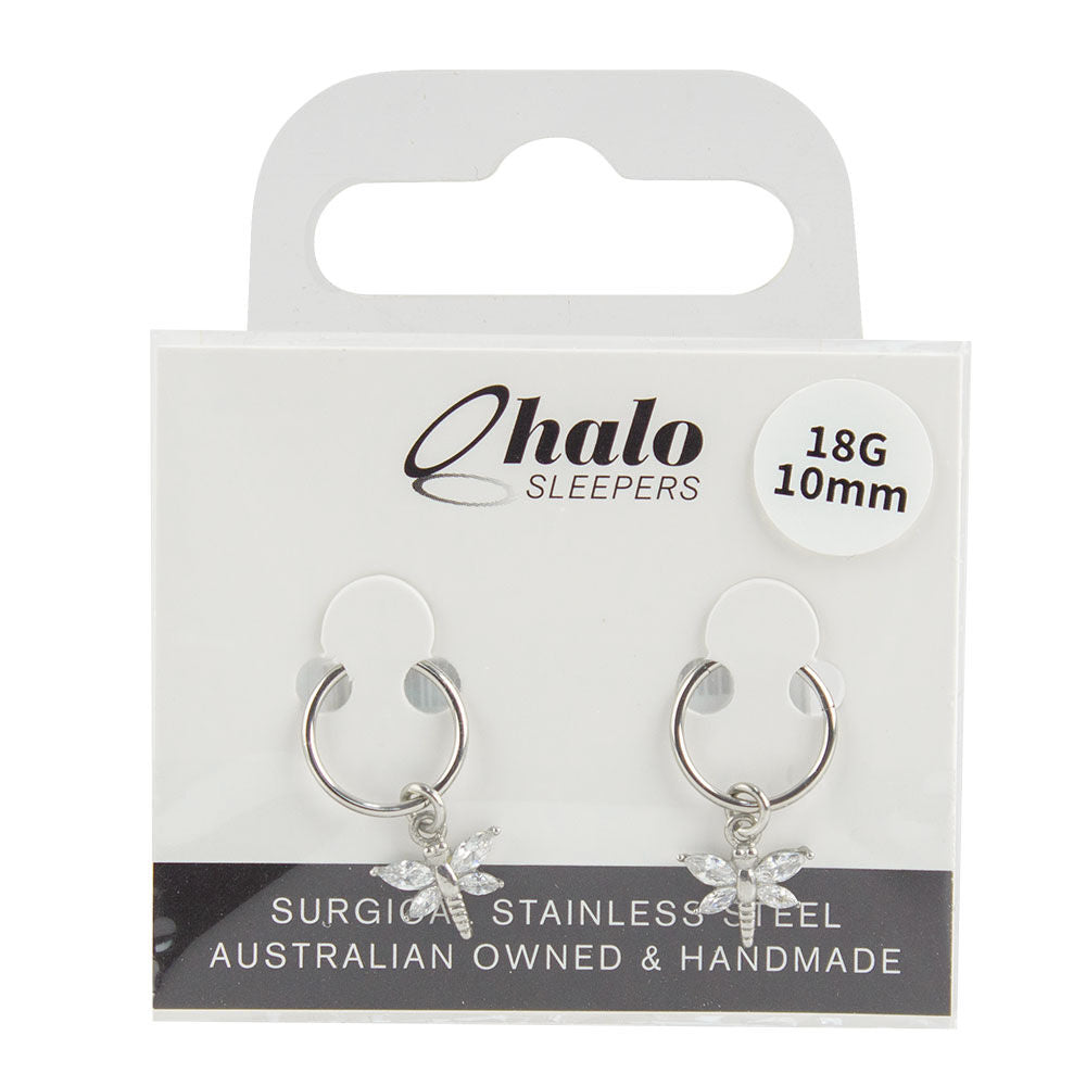 Halo Sleepers 10mm Butterfly Gem Sleeper Earrings D Stainless Steel 18G