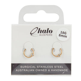Halo Sleepers Stainless Steel 18g Gem Ball Gold 8mm Sleeper Earing Set