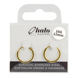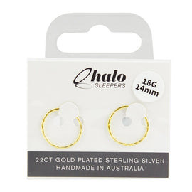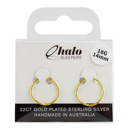 Halo Sleepers 14mm Sleeper Earrings 22ct Gold Plated Sterling Silver 18G