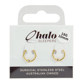 Halo Sleepers 10mm Gold Stainless Steel Gem Ball Earrings 18G Hypoallergenic