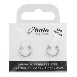 Halo Sleepers 10mm Satin Twist Stainless Steel Sleeper Earrings 16G Pair