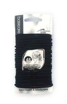 Basicare Round Elastic Hair Ties Black 48pcs No Metal Snag Free