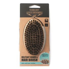 Basicare Military Beard and Hair Brush with Firm Natural Boar Bristles