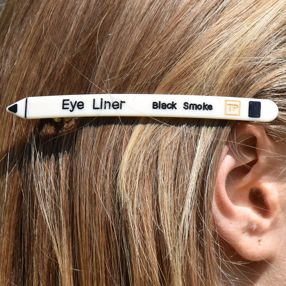 Fun, creative, and unique. Introducing Give Me Eyeliner Barrette a quirky and stylish hair statement for those who prefer something different. Inspired by the eye makeup essential (eyeliner), this piece holds your hair while makes a resounding statement that turns heads. Perfect for modern, artsy, creative, casual styles...