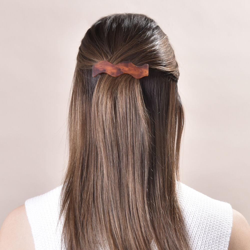 Simple, artsy and versatile for styling. Introducing Lani Artsy Wave Barrette Set - a contemporary style barrette set for lovers of uniqueness and simplicity. This set features 2 wavy barrettes in brown and grey. They are ideal to grab or clip a strip of hair. Suitable for modern, artsy, creative, girly, casual, everyday style and more. Also suitable for teens and kids.