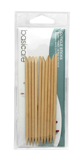Basicare Cuticle Sticks 10 Pack 115mm Dual Ended Wooden Manicure Tools