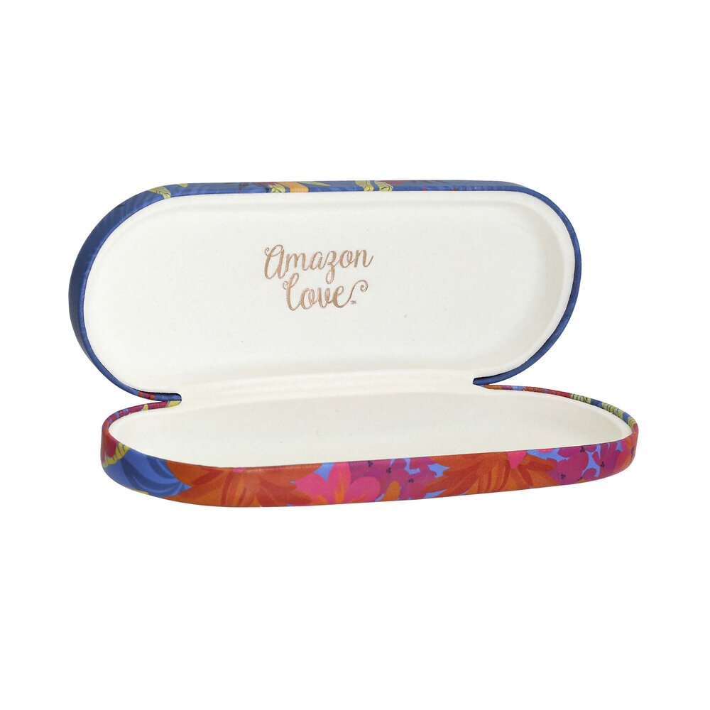 This glasses case shows a beautiful Tamarin design together with gorgeous natural elements. Lined internally with felt, the case will protect your glasses from scratches.Product InfoSize: W 164mm x H 40mm x D 63mmMaterials: Leather look PU, felting on internal, hinge closure.