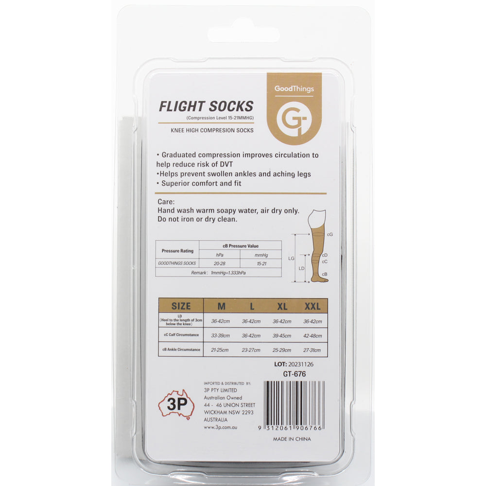 Elevate your travel experience with Good Things Flight Socks, offering optimal compression to keep your feet comfortable and your legs energized during long journeys. Designed with a compression level of 15-21mmHg, these socks are an essential travel companion for anyone looking to reduce the risk of Deep Vein Thrombosis (DVT) and alleviate leg discomfort while flying or during extended periods of inactivity.