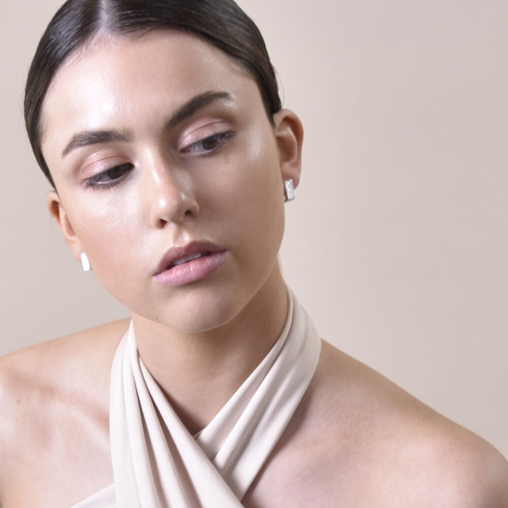 Blending geometry and textures for your everyday earring style. Introducing Adelyn Art Deco Textured Huggie Earrings (Silver) - a contemporary deco style ear art for your elevated everyday styling. This design features rectangular shaped vertical huggie earrings with stippled texture on front and back. The earrings are made of solid sterling silver and brilliant white rhodium plating (anti-tarnishing) for for hypoallergenic and durable wear, as well as a brighter silver shine. They are of a comfortable weight for wearing all day and suitable for women and girls of all ages and all personal styles. Hypoallergenic, nickel, cadmium and lead free.