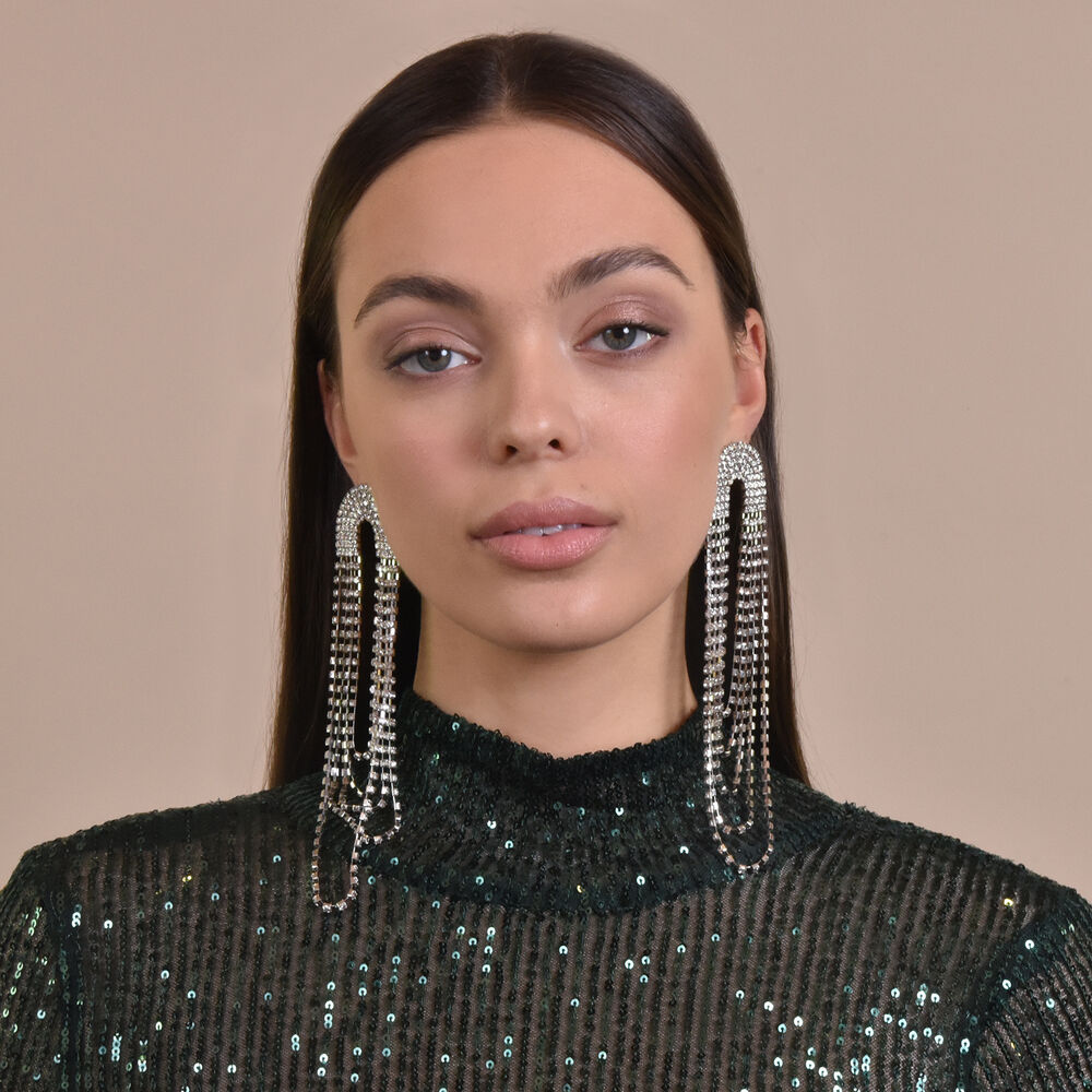 When catwalk earrings are at your total access, Aelda Oversized Catwalk Earrings bring the runway earrings to your fashion styling. This design is crafted in environmentally friendly stainless steel (nickel free) with crystal-encrusted diamantes and silver plating, giving the earrings a bright shimmer. This eye-catching design will surely grab the attention without speaking a word. Great for fashion events, party, high tea, runway, magazine styling.