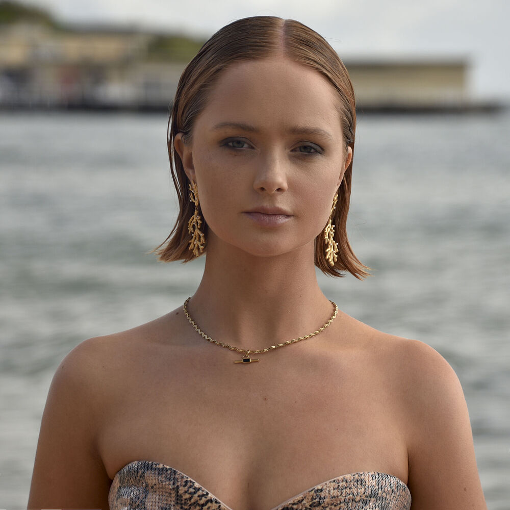 Carry the magic sparkles of the ocean. Introducing Alvena Coral Statement Earrings - a marine-inspired statement beauty for beach and sea lovers. This design features coral-shaped drop earrings decorated with petite faux pearls. The earrings are made in environmentally friendly brass with 18ct gold plating. A unique ear love to add on for an oceania magic touch.