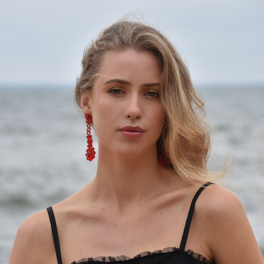 Speaking in the passion of red and as sweet as raspberry drops, introducing Arabella Rouge Beaded Earrings, a romantic, feminine yet outspoken design expressing your unique fashion statement 'boldly' and 'softly'. Just like a classic red lip shade, red and classy are never forgotten. Perfect for dressy, party, racing, semi-formal and formal occasion. - Sterling silver earring posts - Available for both pierced and non-pierced ears