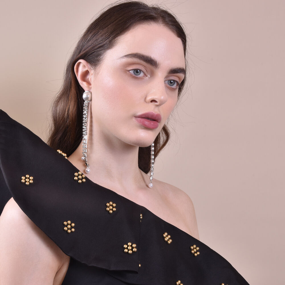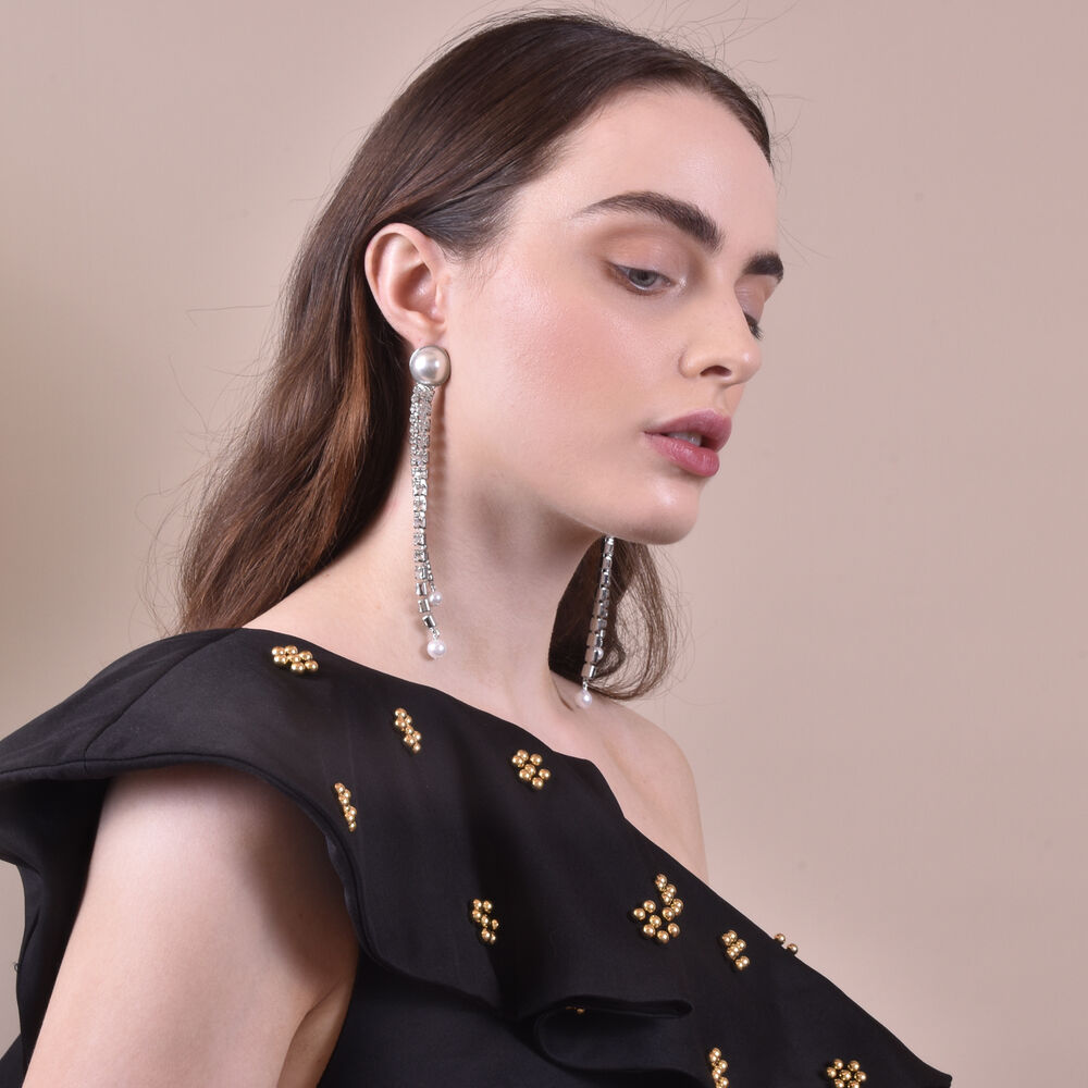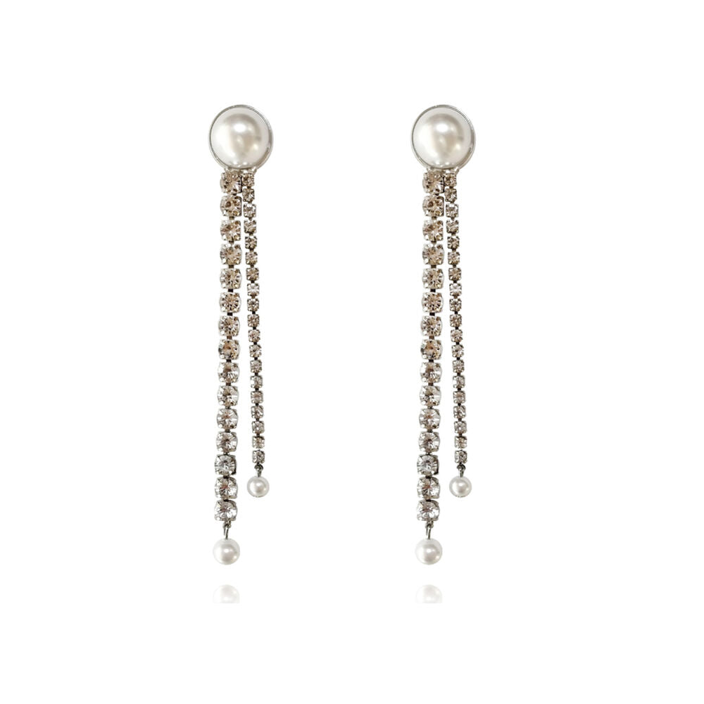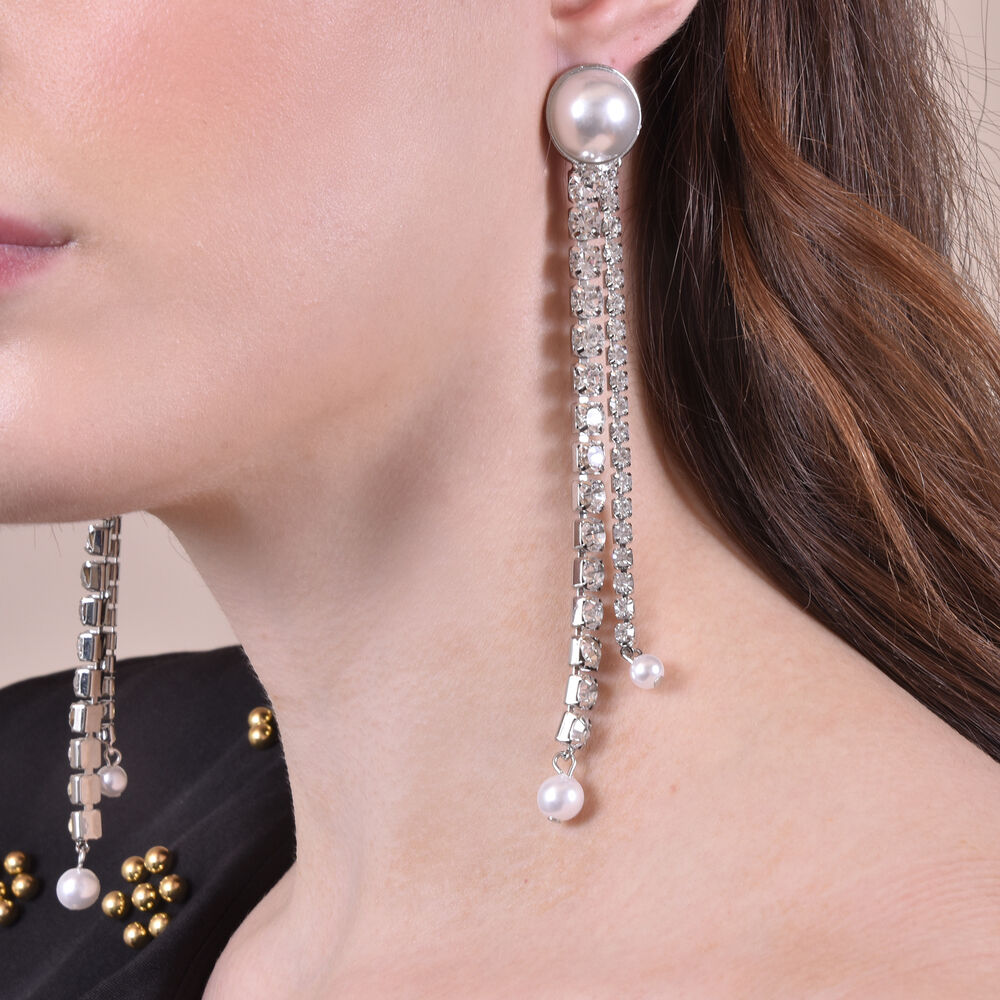 A shimmering statement that is elegant and 'dressy-ready'! introducing Chandler Dangling Elegance Earrings - when elegance is expressed in a sense of daring. This eye-catching rhinestone tassel drop design makes a perfect chic statement that 'uplifts' your everyday style in a blink of an eye. Perfect for modern dresses, jumpsuits, smart casual and evening wear. Available for both pierced and non-pierced ears.