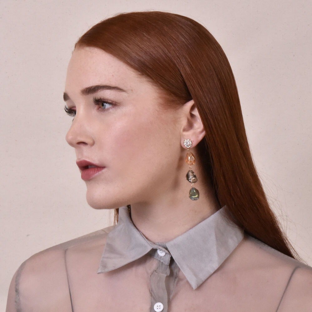 Slightly retro yet playful and chic, Clare Mismatching Tassel Drop Earrings are such a sweet and fun earring style that adds some bubbly zest to your styling. This design features artificial crystal stone drop and one string of rhinestone tassel for a unique contrast. The earring headings are also embellished with shimmering diamantes for a subtle shine. Perfect for modern, fun, party, semi-formal, smart casual styles and more. Available for both pierced and non-pierced ears.