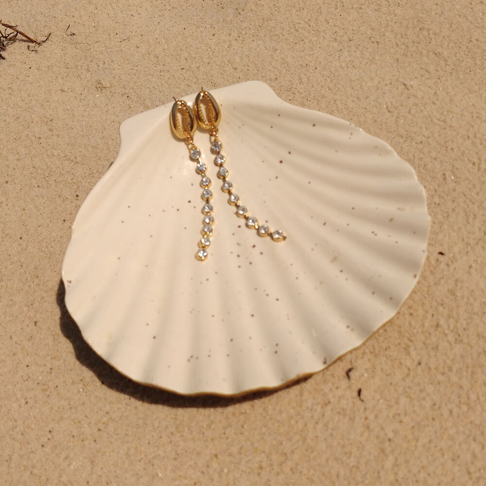 A new modern interpretation for coastal earring styles! introducing DeDe Shell Glamour Earrings - a glamorous, elegant and simple design that blending coastal elements and sparkling stones in a harmonious fashion. This design is crafted in environmentally friendly stainless steel (nickel free) with crystal-encrusted diamantes and 14K gold plating, giving the earrings a bright shimmer. Perfect for any dressy occasions and of course for coastal style lovers.