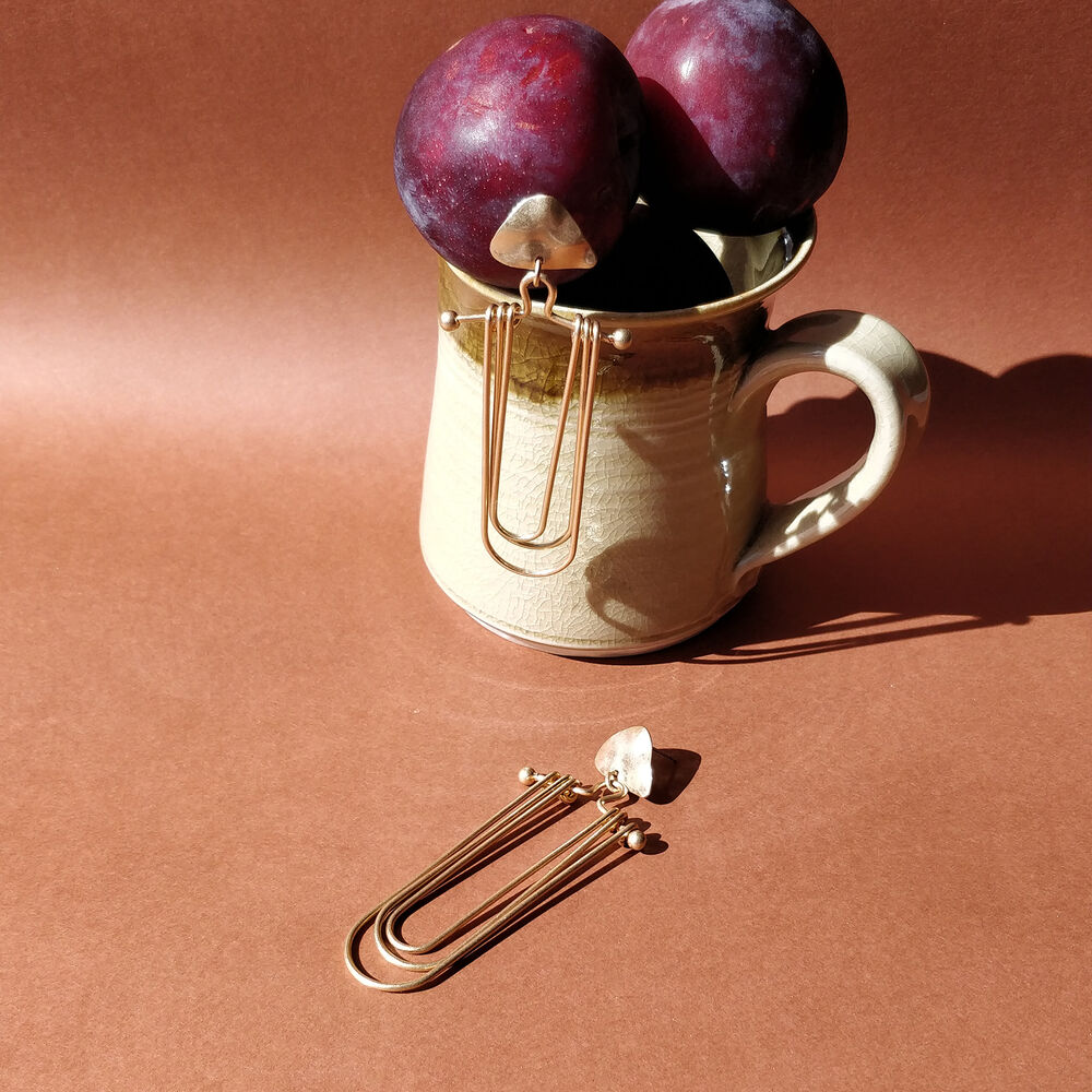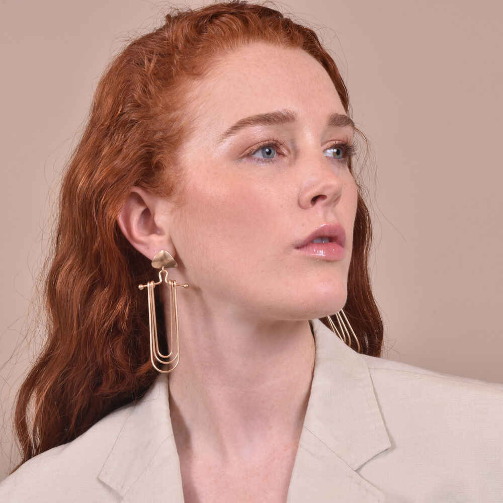 Contemporary infused with rawness. Introducing Editta Sculpture Layered Earrings a unique sculpture-inspired design for artsy style lovers. This creative design is crafted in environmentally friendly brass (nickel free) with 14K matte gold plating. A statement that will grab the eyes and of comfortable weight for long hours wearing. Perfect for modem, artsy, creative, earthy, smart casual, casual styles and more. Hypoallergenic, nickel, cadmium and lead free.