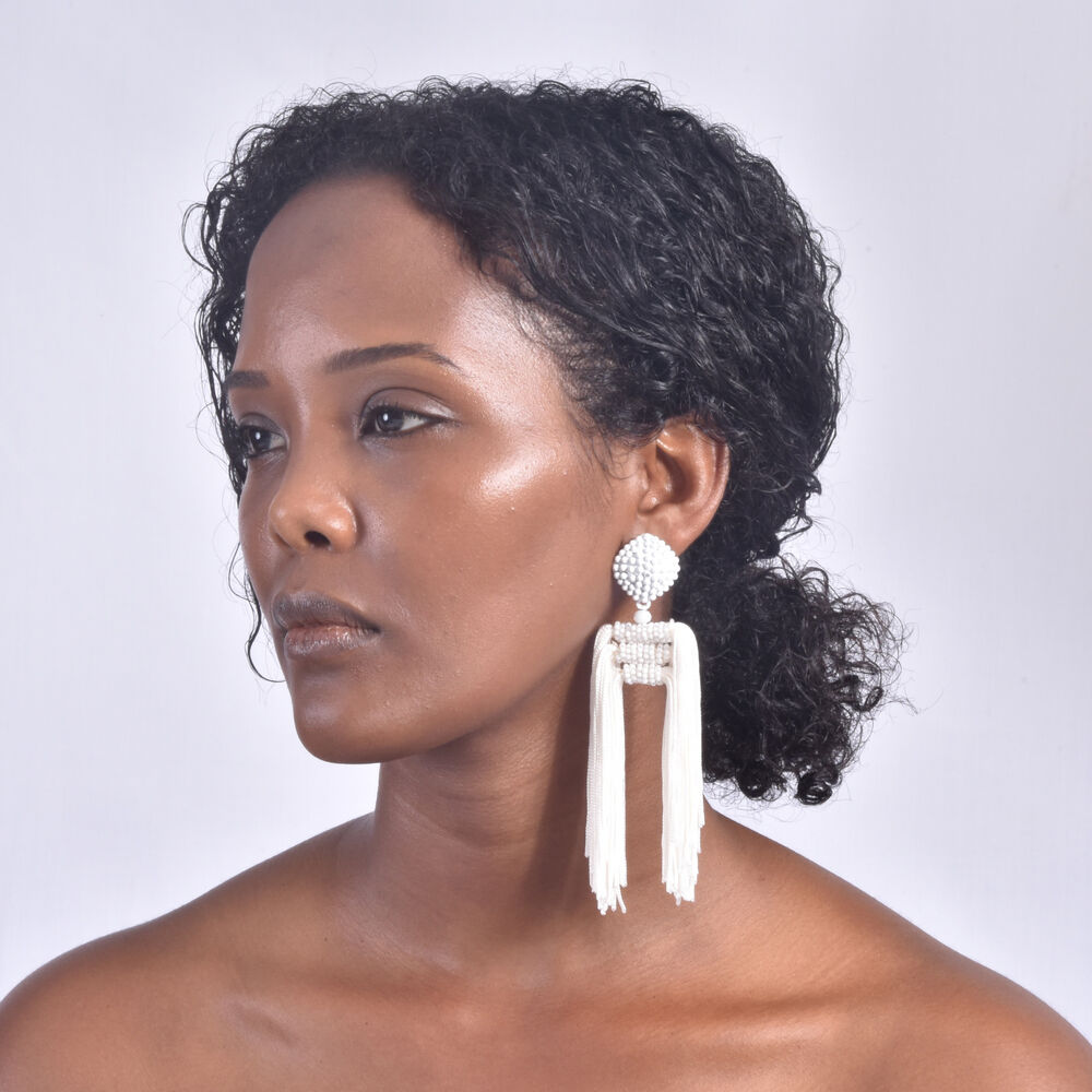 Calm, elegant and dressy, this pair of Estee long tassel bead earrings make the perfect fashion accessory for almost all occasions. The density of the beads and the length of tassels create a sense of intensity in a simple fashion. Can be easily styled up with simple casual wear as well as formal wear.
