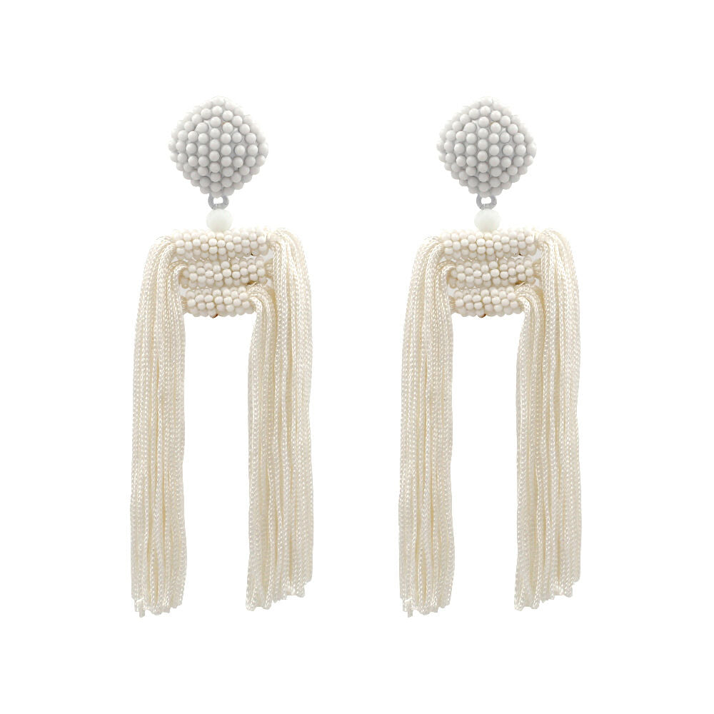 Calm, elegant and dressy, this pair of Estee long tassel bead earrings make the perfect fashion accessory for almost all occasions. The density of the beads and the length of tassels create a sense of intensity in a simple fashion. Can be easily styled up with simple casual...