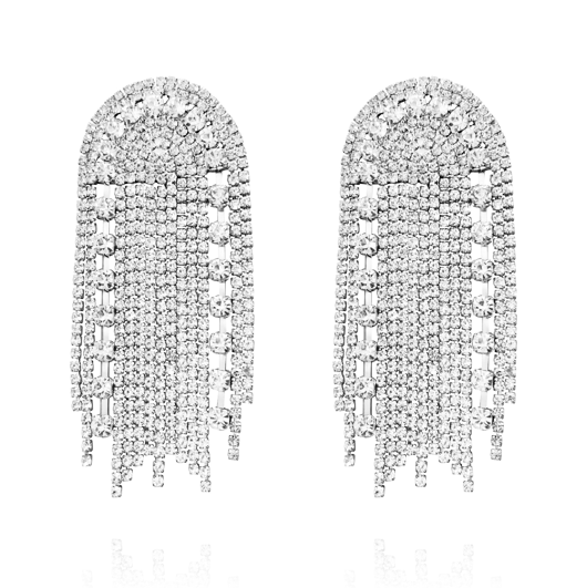 Wondering when a piece of jewellery is equal to a stunning 'outfit'? introducing Faye Glamour Renew Earrings - a luxurious rhinestone and crystal design that is powerful and unforgettable. This design is crafted in environmentally friendly stainless steel (nickel free) with crystal-encrusted diamantes and silver plating, giving the earrings a bright shimmer. This high fashion and 'bomb' style earrings featuring the latest arch earring shape along with shimmering rhinestone and crystal tassels, making you a 'fashion focal' whenever you go. Perfect for fashion events, racing, dressy, wedding, bridal, and formal occasions.