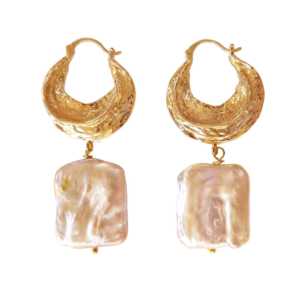 A luxury combination of 18K gold plated textured huggie and sequin-toned big baroque pearls-- Glory Luxury Baroque Pearl Drop Earrings are another exquisitely handcrafted artsy piece that marks your fashion territory. The earring hoops are craved in environmentally friendly brass (nickel free) with authentic and artsy textures. The plating used on the hoops is 18K gold plating which is tarnish resistant. Detail-rich and timelessly classy, perfect for coastal, dressy, modern, fashion events, wedding, bridal, formal and semi-formal occasions.