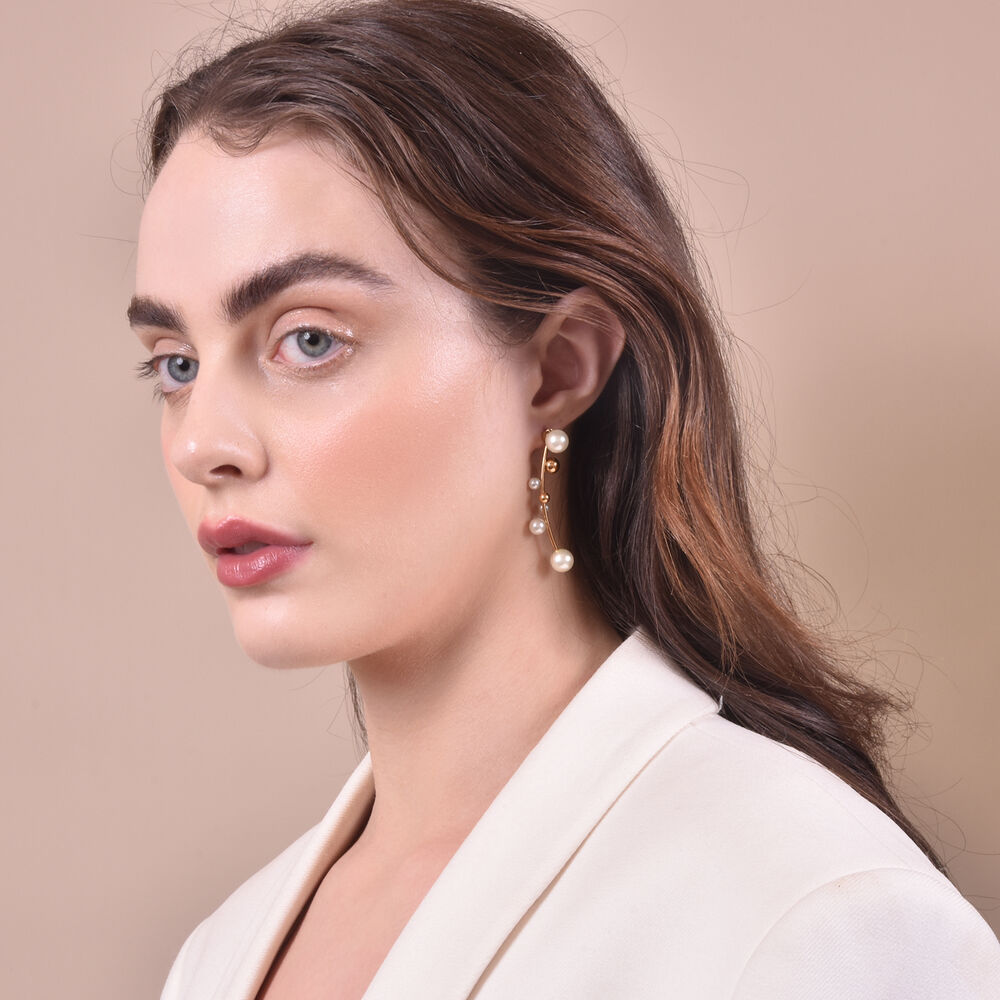 Set in an elegant, flown and vintage tone, Ines Vintage Pearl Climber Earrings elevate your classy way of being almost instantly. Exquisitely crafted with natural smooth curls and pearls of different sizes, this design is of both simplicity and sophistication. Perfect for any formal, semi-formal and smart casual styles and the good news is it is available for both pierced and non-pierced ears.