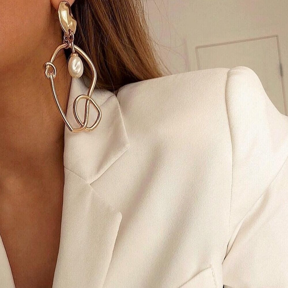 Mega artsy vibes! Joliette Artsy Line Art Pearl Earrings make a most unique pearly line art statement ear piece. Feeling the free and creative energy pouring into you while rock a modern fashionista look, Perfect for artsy, casual, street, dressy, formal and semi-formal occasions. Available for both pierced and non-pierced ears.