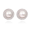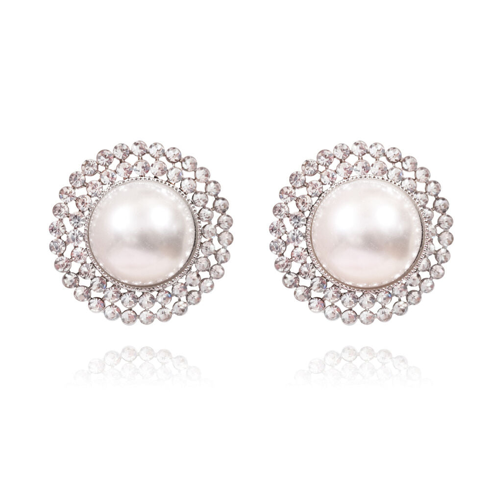 Vintage glamour with a sense of daring. Introducing Le Paris 60s Pearl Stud Earrings a retro Parisian style pearly statement with an unforgettable shimmer. This design is crafted in environmentally friendly stainless steel (nickel free) with large faux pearls and cubic zirconia diamantes arrayed in a stunning circular fashion. Perfect for formal, semi-formal, wedding, bridal, dressy, vintage, high fashion, runway, chic styles and more.