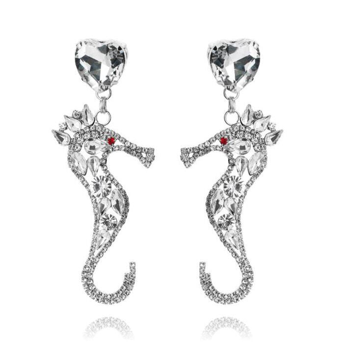 No earring kind of girls? Think twice! High fashion, fun and extravagant, Lexi Seahorse Rhinestone Drop Earrings are an eye-catching and fun statement piece you'll want to add in your accessory list. Make a powerful and exquisite fashion statement as fashion is meant to be fun and expressive....