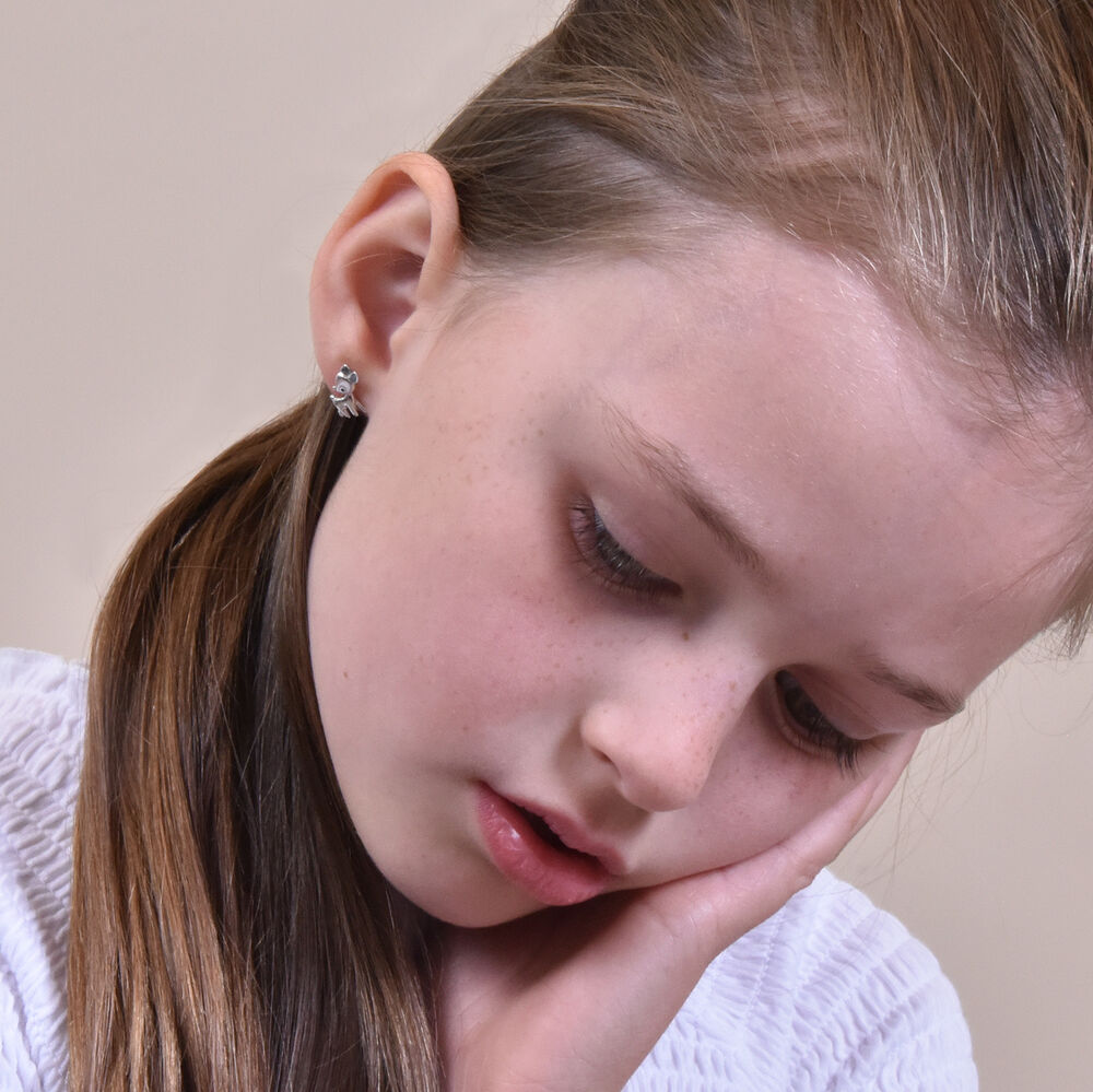 Culturesse dainty silver bambi earrings made of solid sterling sliver. Free from nickel, cadmium and lead, 100% safe for little ears. Perfect for babies, children, newly pierced ears, and for adult dainty earring lovers.