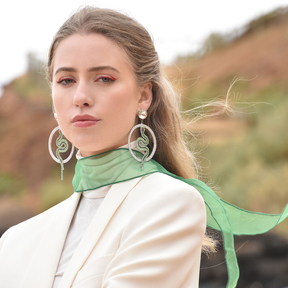 Wild in heart and let your extravagant statement fly. introducing Livi Wild Heart Snake Earrings - an edgy, quirky and eye-catching statement that set the tone for your extraordinary styling. Wild and exquisite in its details, jewellery craftsmanship is expressed in the curves of the snakes. Perfect for runway, fashion events, fashion showcases, creative styling, party and evening wear.