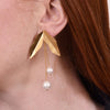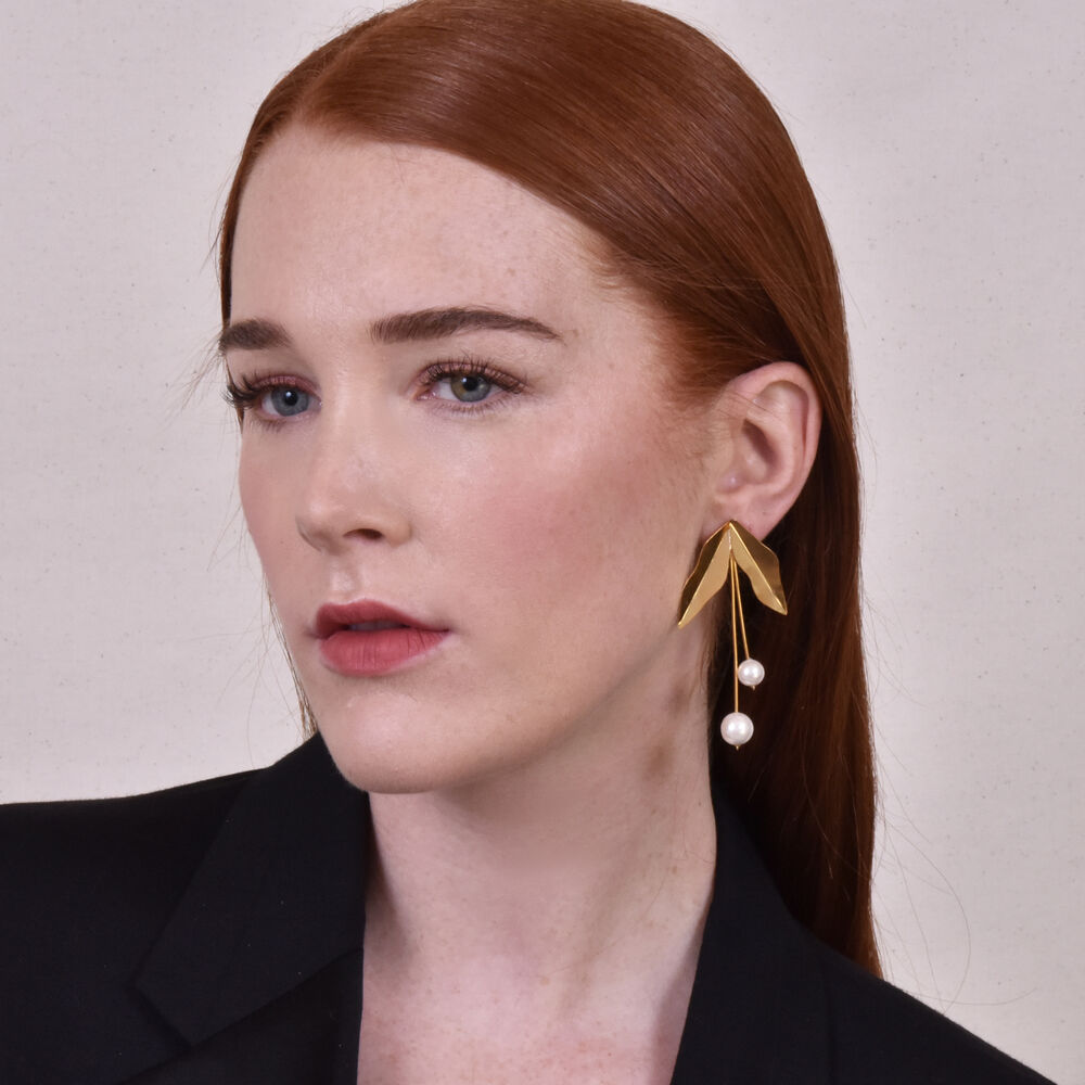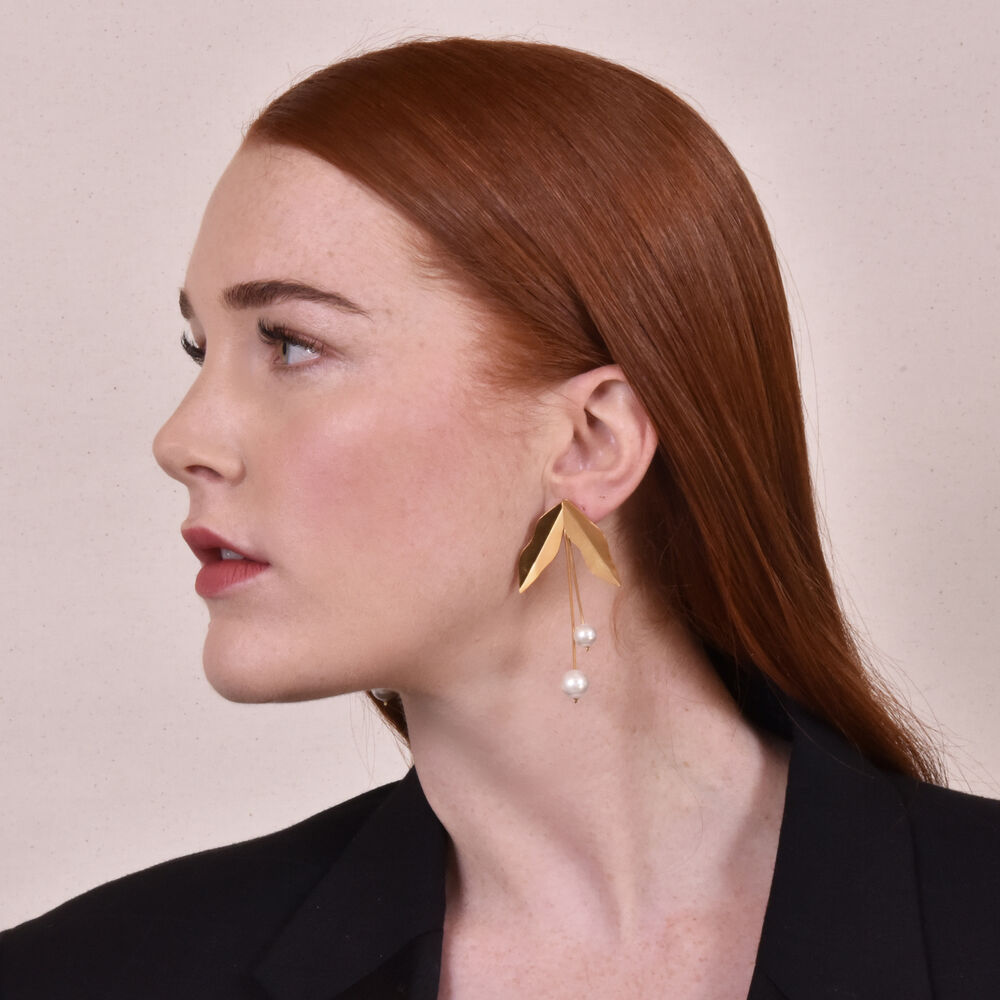 Designed and handmade in our studio using environmentally friendly brass with 24k gold plating, Marjorie 24K Artisan Gold Leaf Earrings are a timeless design that is both artistic and high fashion. The pearls used in this design are marjorie pearls which have a smooth surface and subtle shine. Regardless causal or formal occasions, a unique statement piece will always catch the eyes!
