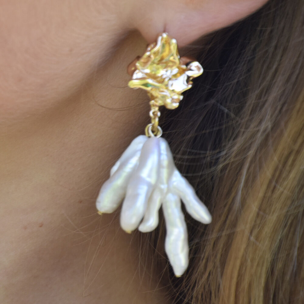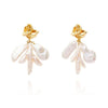 Coral, coral, as flattering as candle light, introducing Meredith Coral Pearl Drop Earrings - another high-end coastal natural pearl design that makes a unique statement for your individuality. Handcrafted using natural big keshi pearls and an artsy gold textured top, this gorgeous pearl craft catch the eyes wherever you go. Perfect for coastal, artsy, dressy, racing, girly, casual and everyday wear. Available for both pierced and non-pierced ears.