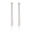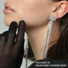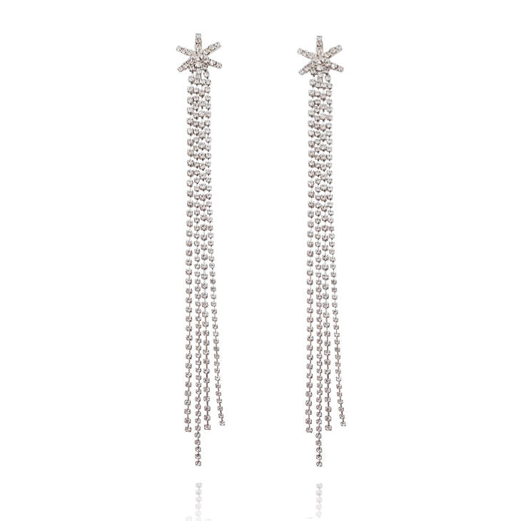 Extravagantly elegant and unforgettable at Culturesse. Introducing Miranda Crystal Diamante Earrings a Vogue style ready earring style that exhibits your uncompromising high fashion attitude. This outspoken design is crafted in environmentally friendly stainless steel (nickel free) with silver plating. The header of the earrings is designed in a snowflake shape embellished with 4 long strings of crystal diamantes, creating a stunning shimmer down your neck. A unique and life-keeping ear treat for any dressy and glamorous occasions. Available for both pierced and non-pierced ears. This design makes it a great fit for non-pierced ears as the metal clip of the earring converter will be hidden behind the earring header almost unseen.