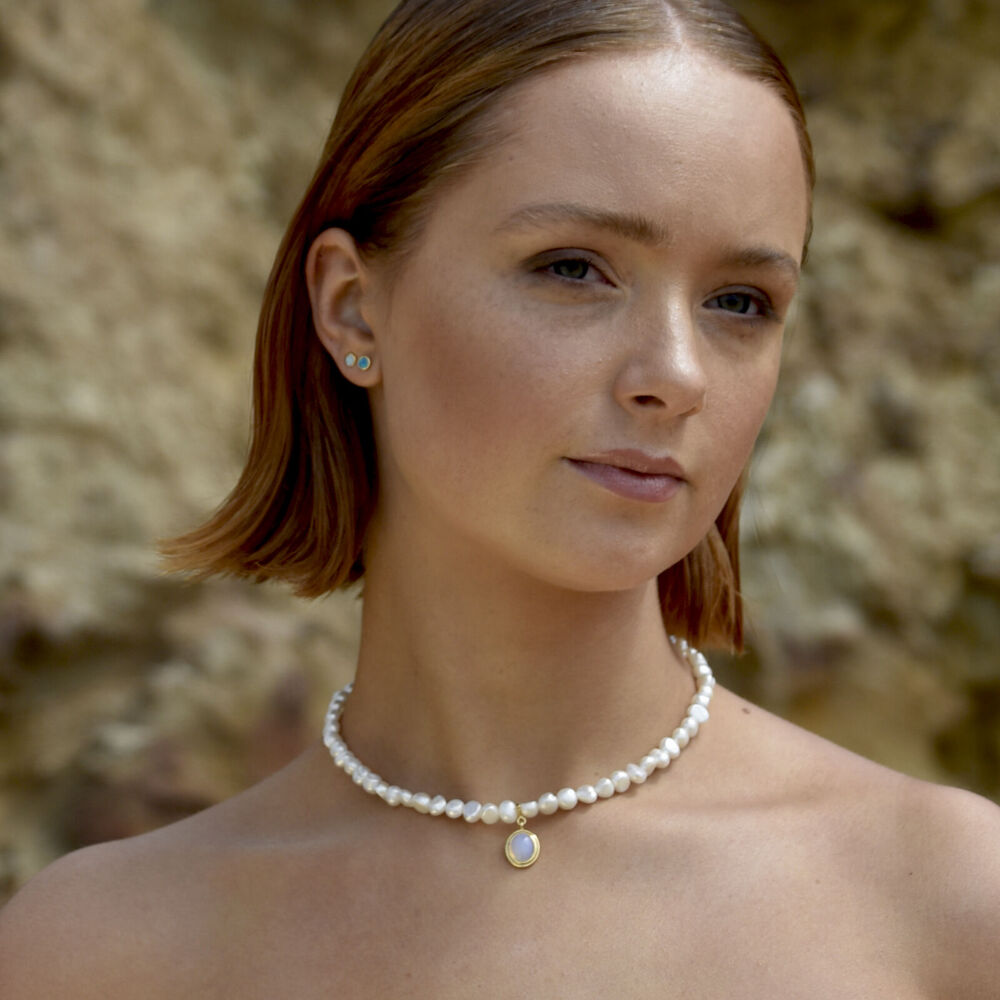 There are worlds in an opal. Introducing Miray Dainty Opal Stud Earrings (Gold Light Blue) - a delicate and timeless opal love for opal lovers of all ages and genders. This design features smoothly polished round flat opals with distinctive colour flares - in darker and lighter blue hues. The earrings are made in sterling silver for enduring and hypoallergenic wear. Suitable for everyday wear. Available in 18ct gold dark blue opal, 18ct gold light blue opal, or silver.