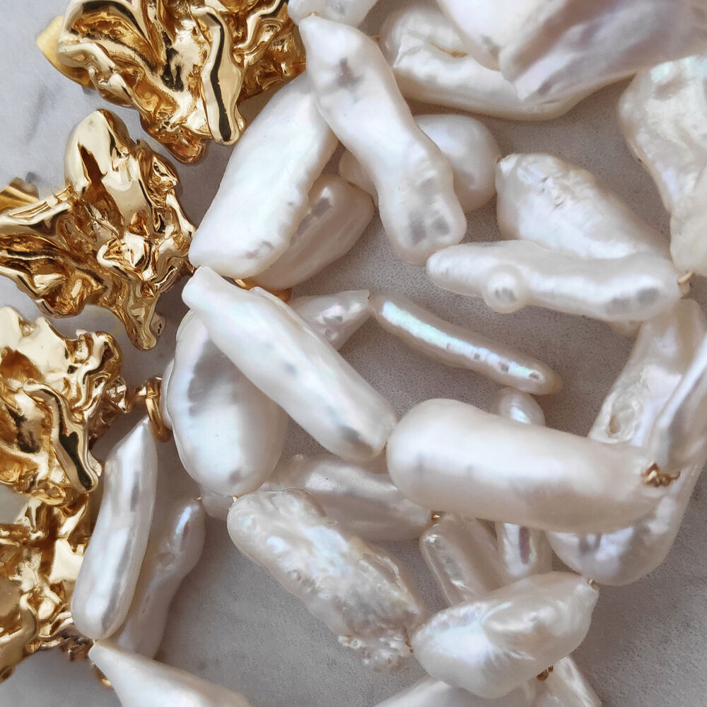 Bring freshwater pearl hoops to another level, introducing Rosalyn Coastal Devine Pearl Hoop Earrings - a unique design blending irregularity, metal textures and natural pearl textures into one piece. Handcrafted using natural freshwater pearls, the beauty lies in the authentic textures and its originality. Perfect for coastal, wedding,...